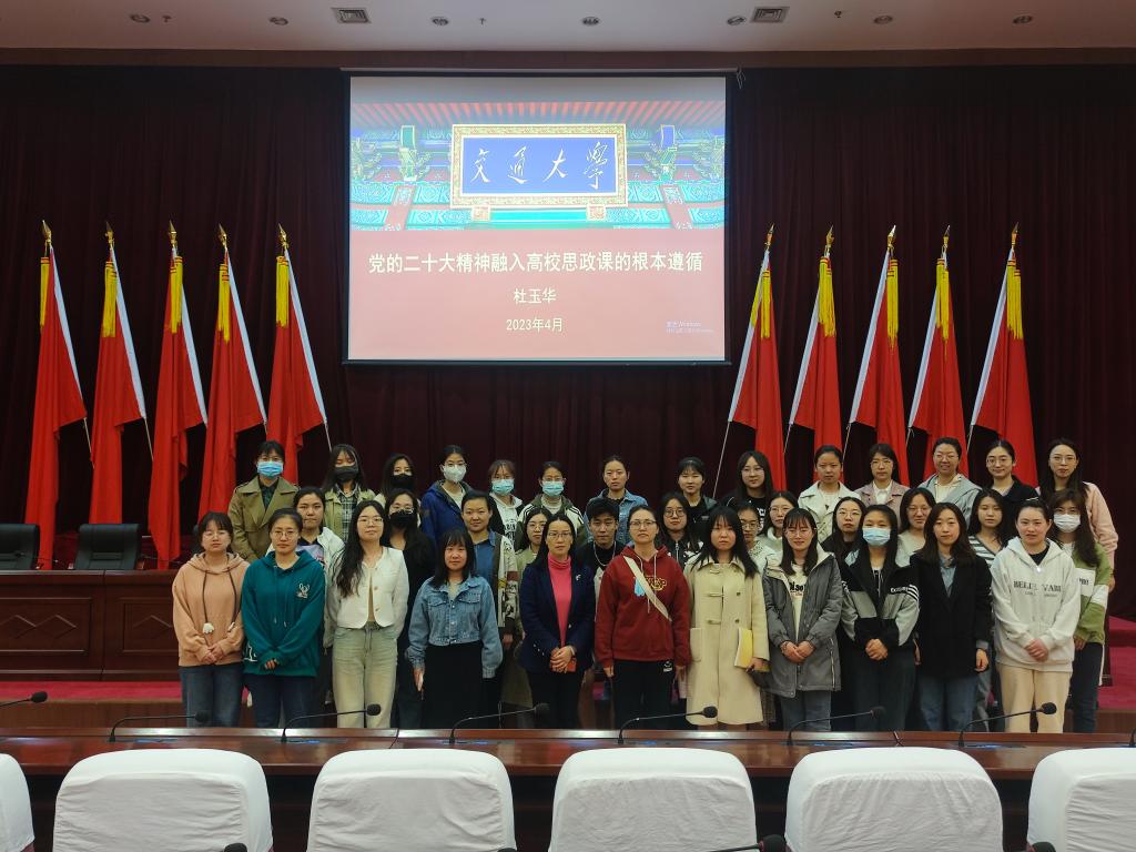的杜玉华教授主讲,杜教授从牢牢把握过去五年工作和新时代十年伟大变革的重要意义、牢牢把握新时代中国特色社会主义思想的世界观和方法论、牢牢把握以中国式现代化推进中华民族伟大复兴的使命任务、牢牢把握以伟大自我革命引领伟大社会革命的重要要求、牢牢把握团结奋斗的时代要求等五个方面对党的二十大提出的新思想新论断、作出的新部署新要求进行了深入解读,帮助师生党员深刻领会党的创新理论的思想精髓,明确党和国家事业未来发展的方向,坚定“四个自信”,坚决做到“两个维护”。