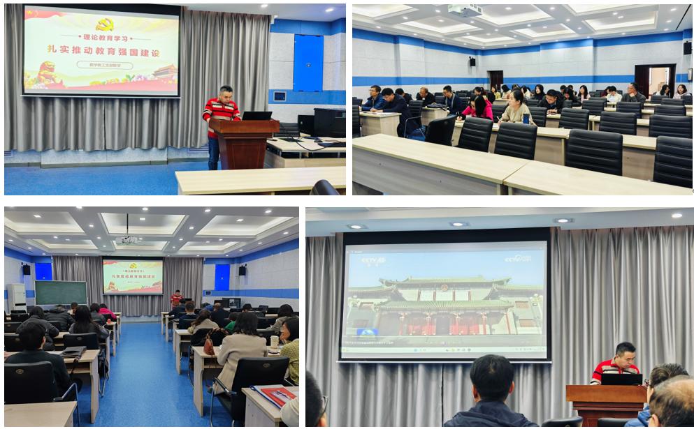 薛震同志首先给大家解读了习近平总书记关于“扎实推动教育强国建设”的重要讲话。习近平总书记深刻阐述了中国特色社会主义教育强国的丰富内涵,科学回答了建设教育强国一系列重大理论和实践问题,为我们在新时代新征程上加快推进教育现代化、建设教育强国指明了前进方向、提供了根本遵循。作为高校教师,我们在推进教育强国建设中担负着重要的使命。我们要深刻认识以习近平同志为核心的党中央推进教育强国建设的深远政治考量和深邃战略眼光,必须以坚持党对教育事业的全面领导为根本保证,以立德树人为根本任务,以为党育人、为国育才为根本目标,以服务中华民族伟大复兴为重要使命。不断学习、提升自己的专业知识与技能,积极参加各种培训和学习活动,积极改革创新,不断提升自己的综合素质和能力水平,为建设一流高校和培养一流人才贡献自己的力量。