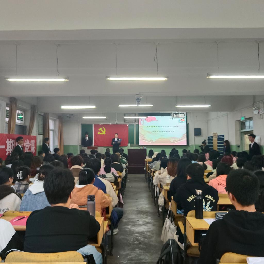 组织员任变青老师,主持人张奕琳同学及百余名入党积极分子参加了开班仪式。