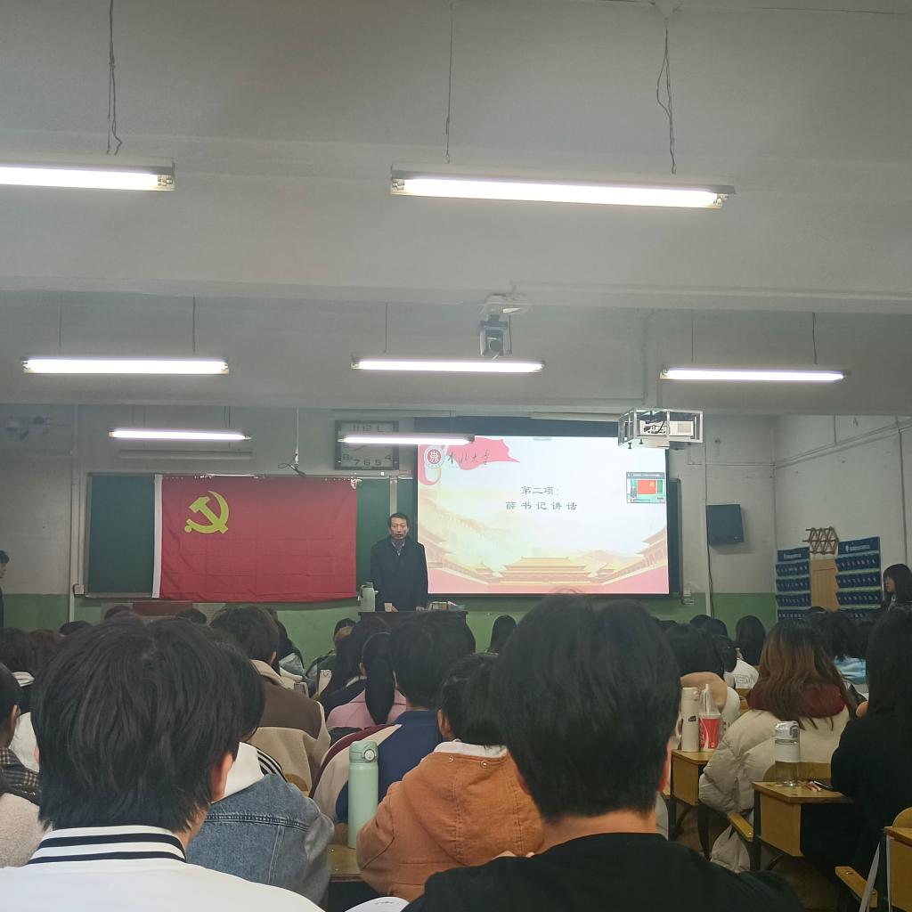 党委副书记孙俊伟老师为大家宣读上课纪律;强调课堂纪律,不迟到不早退,不在课堂上做与学习无关的事情,对全体学员提出学习要求;党支部将会严格审核,承诺党员选拔是公开公正透明的。