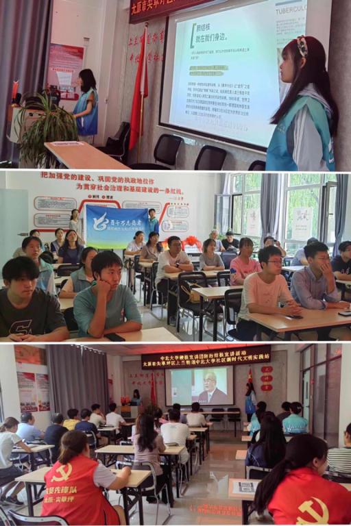 7月17日,团队的宣讲活动正式开始,队员们来到了太原市小店区的北张小区居委会进行了防治结核的宣讲活动,居委会工作人员对团队的宣讲活动表示了很大的支持,为他们召集了许多聆听宣讲的居民,第一次实际宣讲,我们的心里都还有一些紧张,但随着我们宣讲的开始,人们开始对我们讲解的内容产生了兴趣,想要了解,也开始和我们有了一些话语上的互动,为了宣讲活动不枯燥无聊,我们还增加了提问环节,引导居民们去回答记忆,我们的宣讲也愈发的顺利,居民们也在宣讲内容里获得了知识,更加了解结核病防治的重要性。