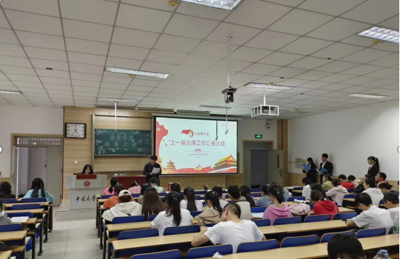 上一学年学生会工作活动成果中拉开序幕。在会上,学生会主席孙雨豪发表讲话,在讲话中,他们对上一学年的工作做出了深刻的反思与总结,并对此届学生会干部成员提出了新的工作要求。