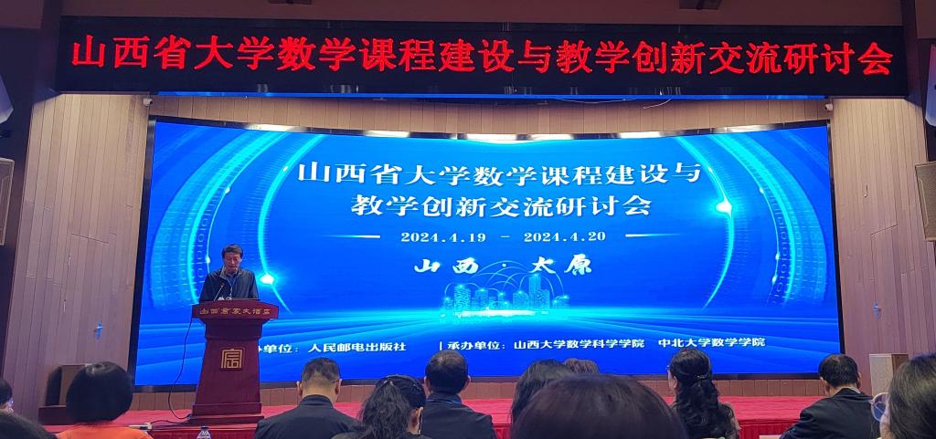 为助推山西高校数学一流课程建设及教研教改,2024年4月20日,“山西省大学数学课程建设与教学创新交流研讨会”在山西省太原市山西君宸大酒店隆重召开,会议由人民邮电出版社主办,凤凰彩票平台 和山西大学数学科学凤凰彩票平台 共同承办,省内26所本科院校的近两百名老师参加了本次会议。