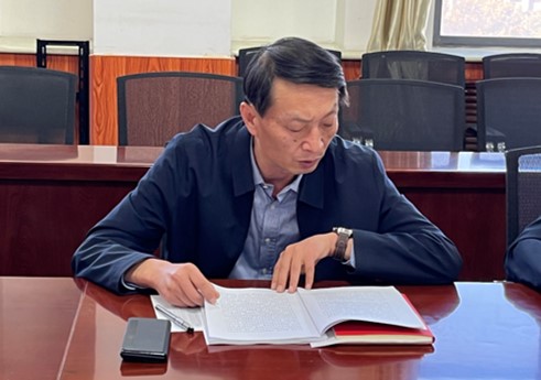 会议室召开2024年党委理论学习中心组第十次集体学习扩大会议。会议由院党委书记薛亚奎同志主持,院领导班子成员、党委委员、党支部书记、各系主任、各科室负责人参加会议。
