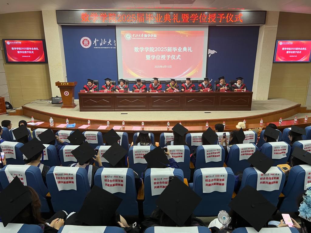 学位授予结束后,院长孙桂全为本次毕业典礼致辞,向即将告别母校、奔赴未来的2025届毕业生表示衷心祝贺;并以“尺规绘人生,方程解未来”为题,向他们表达了诚挚的祝福与殷切的期望,为毕业生们送上祝福:从今天起,同学们将从“中北数学人”变成“中北校友”,愿大家在未来的人生道路上一帆风顺,勇往直前,创造出属于自己的精彩人生!