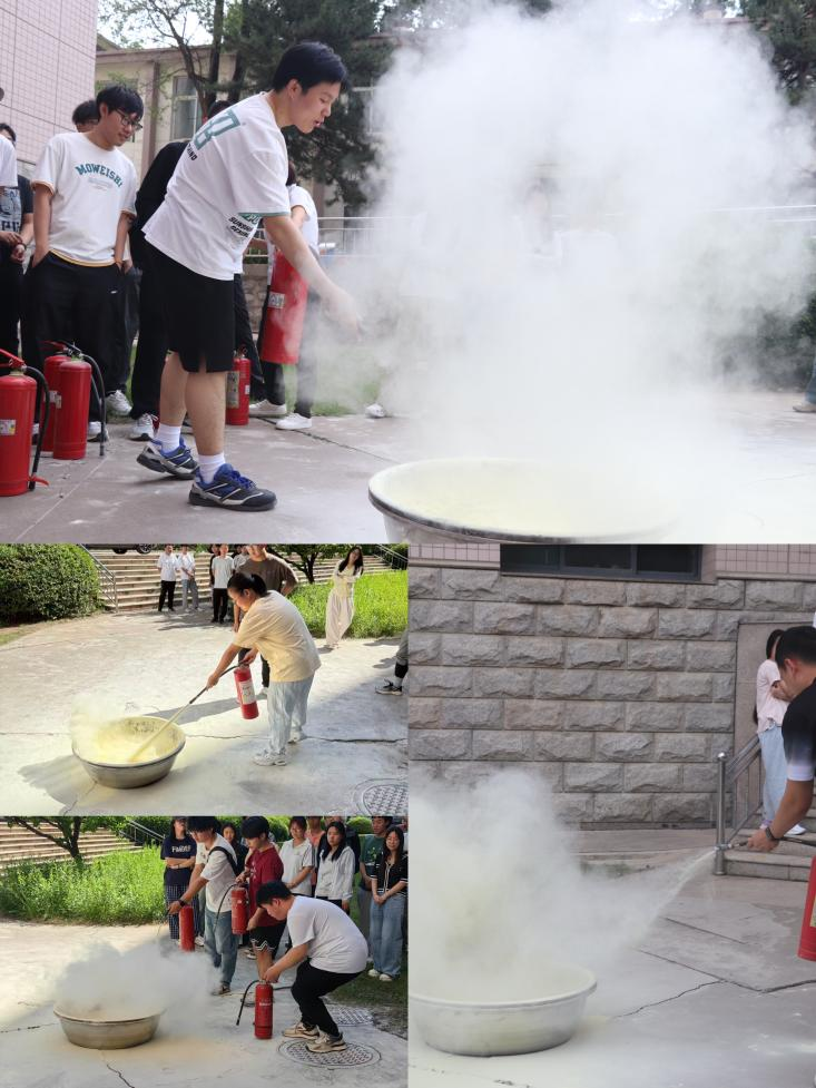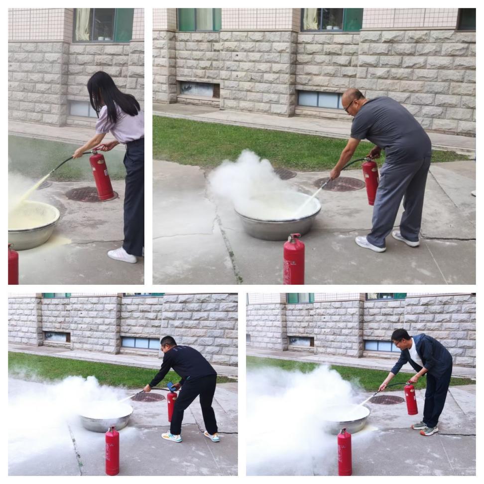 教职工参加消防技能演练,参训教师踊跃参与,按照操作规范灭火,熟练掌握灭火器的使用。