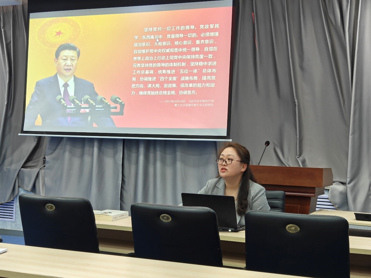 本次专题由支部宣传委员续晓欣同志领学,主要学习了中国共产党领导是中国特色社会主义最本质的特征;“两个维护”是党的最高政治原则和根本政治规矩;不断提高政治判断力、政治领悟力、政治执行力;健全总揽全局、协调各方的党的领导制度体系的内容。具体从为什么说坚持党对一切工作的领导是实现中华民族伟大复兴的根本保证,如何维护好习近平总书记党中央的核心、全党的核心地位,应当从哪些方面完善坚持党的全面领导的制度等方面进行了学习。学习过程中大家踊跃发言,积极讨论,交流学习心得体会。
